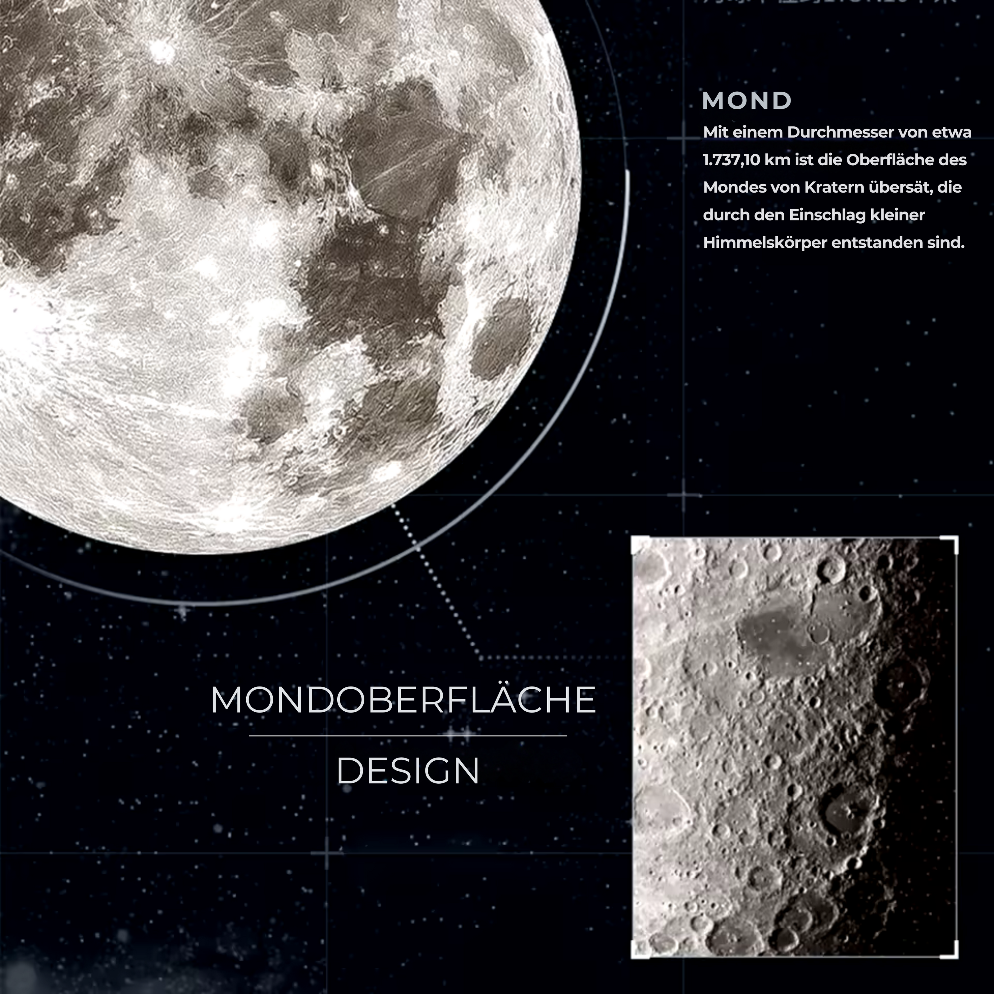Hier kommt unsere Luna ins Spiel. Sie bringt den Zauber des Mondes direkt in dein Zuhause. Diese innovative Leuchte sorgt nicht nur für sanftes, diffuses Licht, sondern verwandelt jeden Raum in eine entspannende Oase. Die realistische Mondoptik sorgt für eine beruhigende Atmosphäre und passt sich mühelos jedem Raumdesign an. Studien haben gezeigt, dass warmes Licht und beruhigende Beleuchtung einen positiven Einfluss auf die Schlafqualität und die allgemeine Stimmung haben.